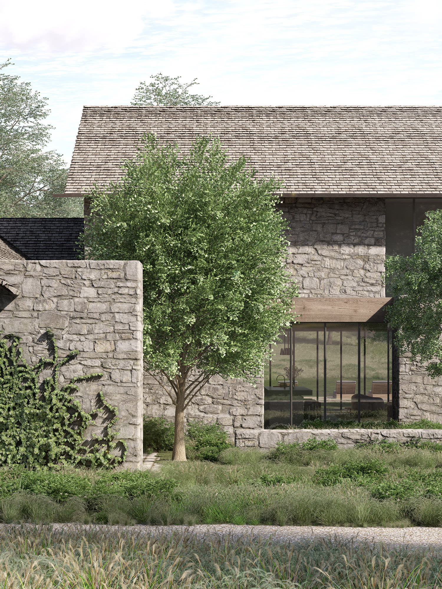 A mature couple looking to downsize their current lifestyle requested a home that would age gracefully into their golden years. The property, set within the foothills of the surrounding mountains, previously housed a dilapidated, stone barn built in the early 19th century.